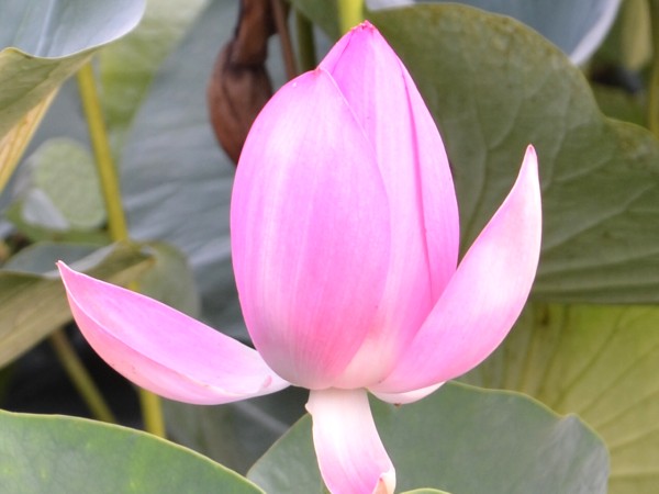 早朝より後楽園の催事、観蓮節(かんれんせつ)へ 岡山来てから初めて行って来ました。 夜明けと共に開花するハスの花を楽しむ行事に暗いうちから、 大勢の大勢のアマチュア写真家や愛好家&観光客達がこの 夏の風物詩を楽しまれていました。 特に着物の方が多く入園されており、後楽園にお似合い の方々が多かったのが印象的でした。 観蓮節は昭和31年、岡山市出身の大賀一郎博士から 古代ハス(大賀ハス)を譲り受けたのを機に毎年この時期に 実施されています。 園内の花葉の池付近、井田の気品のある 古代ハスの「大賀ハス」の開花途中、 わたしが撮影した1枚です。