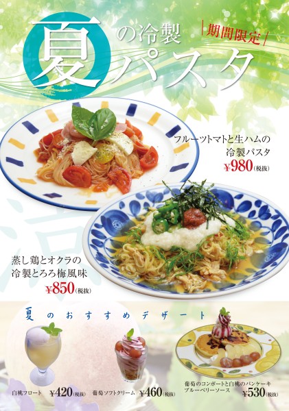 本日より、ホテルエクセル岡山1階レストラン「ALOALO」にて、ひんやり美味しい夏メニューの販売がスタートいたしました。ランチにてお食事の女性のお客様より、さっそく「美味しかった!」との嬉しいお言葉をいただいたとのこと。誠にありがとうございます! 蒸し暑さを吹き飛ばすALOALOおすすめの味わい。夏のデザートとともに、ぜひお試しくださいませ。○フルーツトマトと生ハムの冷製パスタ 980円(税別)豊かな甘味のフルーツトマトと黄色や緑のプチトマトをちりばめたカラフルな冷製パスタです。まろやかなモッツアレラチーズに、旨みの生ハムを組み合わせました。フレッシュバジルの香りとともにお召し上がりください。○蒸し鶏とオクラの冷製とろろ梅風味パスタ 850円(税別)とろろ芋とオクラのとろ~りねばねばコンビ! 和風醤油ベースの冷たいソースに梅の酸味が爽やかです。ソースを吸った蒸し鶏は柔らかくて実にジューシー。汗をかいた暑い日、特におすすめしたいひと皿です。- - - - - - - - - - - - - - - - - - - - - - - -レストラン ALOALO(アロアロ)所在地/岡山県岡山市北区石関町5-1 ホテルエクセル岡山1F営業時間/11:00~22:00(LO 21:00)定休日/なし駐車場/提携の民間駐車場をご利用ください(ご飲食3,000円で1時間、5,000円で2時間無料) レストランALOALO 公式HP/http://restaurant-aloalo.com/- - - - - - - - - - - - - - - - - - - - - - - -百年の生命力あふれる「四万十ぶしゅかん」の爽やかなジュ-ス。【四万十屋】四万十百年ぶしゅかんドリンク15本セット
