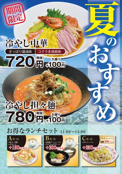 暑い季節に恋しくなる、冷たい麺メニューが餃子屋台に新登場!ボリューム満点のふたつの味わいを、ぜひお試しください!○冷やし中華 720円(税別)エビを丸ごと1匹のせた、具だくさんの冷やし中華。「さっぱり醤油味」「コクうま胡麻味」2種類のオリジナルだれからお好みの味でどうぞ。○冷やし担々麺 780円(税別)ピリ辛でありながらまろやか、コク深いのにあと口さっぱり。夏ならではの冷たい担々麺をお楽しみください。※それぞれ大盛りは+100円(税別)〔ランチセット〕11:00~14:00限定のお得なセットです。冷やし麺にプラスしてどうぞ。 ○Aセット +150円(税別) (餃子3個/デザート) ○Bセット +200円(税別) (唐揚げ/シューマイ/ライスまたはデザート) ○Cセット +250円(税別) (半チャーハン)- - - - - - - - - - - - - - - - - - - - - - - -中華ダイニング 餃子屋台所在地/岡山市北区石関町5-1 ホテルエクセル岡山B1F営業時間/11:00~14:00(土・日・祝日は15:00まで)、17:00~23:00定休日/無休お問い合わせ/086-227-3462餃子屋台 公式HP/http://gyoza-yatai.com/- - - - - - - - - - - - - - - - - - - - - - - -【送料無料】コケロミン ネコしろくろ ケロミン ねこ カエル パペット型 電子楽器 トゥロッシュ シューイチで中丸君が演奏して話題! KAT-TUN 中丸雄一【送料無料】コケロミン ネコしろくろ ケロミン ねこ カエル パペット型 電子楽器 トゥロッシュ シューイチで中丸君が演奏して話題! KAT-TUN 中丸雄一 02P27May16