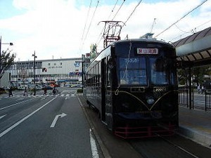 この路面電車には一台だけレトロな外観の通称KUROという車両が