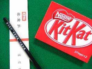 ネスレ「キットカット」を1つ、さらに岡山神社の合格エンピツを1本プレゼント!