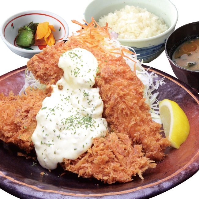 揚げたてサクサクの秋鮭フライには、自家製タルタルソースがよく合います。かつ丼城下町で秋の美味をご堪能ください!