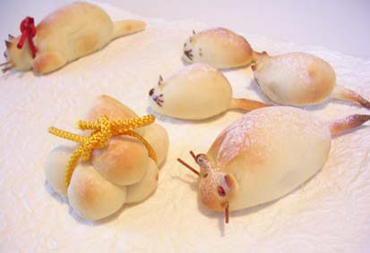 正月2日は事始♪で初焼き(*^_^*)今年の干支はねずみ・・・で、ねずみのかたち~~これね、成形してるときざわざわしましたの・・・いやん。。米俵ならぬパン俵狙ってます!でかっ!こわ~。。中身は小豆あんこたっぷりこ~仙台では、脳みそが足りない事を「あんこ足りない!」というそうです。。このネズミ、あんこたっぷり~・・・知恵まわりそう。。爆ちびっこたちが見つめる先は。。。。ねこさん!♪ねこさん。。。ねぇ。。ねこさん~!!。。。。寝てますって。。。爆にゃはは。。。今年も続きそう。。動物シリーズ♪それからお正月はかるた♪光琳かるたです♪わたしが和泉式部がすき♪ あらざらむ この世の外の思い出に 今ひとたびの 逢ふこともがな与謝野晶子もこの血をひくような・・・情熱の女性♪よいわぁ。。(*^_^*)