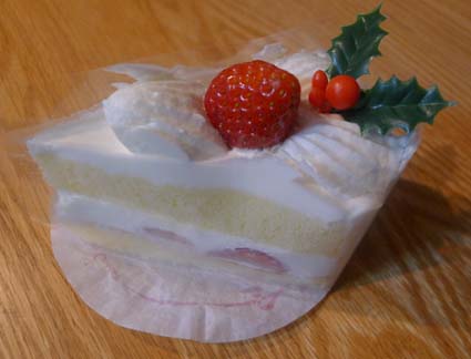 イヴといっても平日、しかも年末を控えた金曜日なので、慌しかったです 仕事は現場の作業が遅れがち。下地というか、骨組みが弱いのでしっかり補強したり 床が水平になっていないのを直したりで余計な手間がかかっています。 明日も仕事で、現場へ行きます。 ケーキを焼く時間は捻出できませんでしたが、ケーキはいただきました コージコーナーのいちごショート なぜ、クリスマスにいちごショートなのかな。。。 キリストのお誕生日だからなのかな。。お誕生日といえば、いちごショート だよね、、一般的に。。。? まぁ、いろいろあるだろうけど、大きいわりに食べた気がしないケーキなので もたれなくていいかも。。 このケーキはホールの8等分くらいかな。。 だとすると8人で分けた1片なのね。 同じホールを食べた人が7人いるのね。だれだかわからないけど、一つのケーキを クリスマスにシェアできたのはちょこっと嬉しい気持ちです。 メリークリスマス おなじケーキを食べたひとたち よいクリスマスでありますように。。 そして、おともだちのみなさんもよいクリスマスでありますように・・・ 外は雪が降り屋根にすこし積もっています。 ホワイトクリスマスだね♪ メリークリスマス ♪