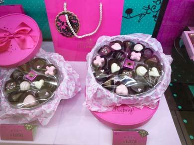 今週後半は気温も上がって暖かです。 今日は仕事の後、夕方スーパーへお買い物に行きました。 特設会場のチョコレート売場はたくさんの人がいました。 すでに売り切れの商品もあったりして、完全に今年も出遅れてます。。 みなさん、早いなー。。。 ショーケースを覗いたらかわいいチョコレートがたくさんありました♪ かわいいです。 これは男性へというようり女の子へのプレゼント用 みたいですよね。 これもかわいかったです~♪ 今年のチョコは、一粒が小さいのが多いみたい。。 でも、お値段は小さくない~ あれこれ迷って、下の写真の右のを買いました。 明日持っていくんだ~ (^v^) ♪♪