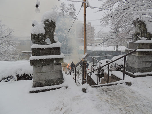 3連休最終日は大雪 大雪警報がでています 朝からどんどん降って、どんどん積もっています。 家からでずに図面描きをしていましたが、午後からお正月のお飾りを外して 近くの神社へ持っていきました。 今日14日は、どんと祭です。 足を取られながら行きました。 歩いて約10分くらい すでに始まっていました。 きょうは雪なので、早めに始まったようです。 境内にある、この木は桜かな、もうちいさい芽をつけているんだね。 帰り道、橋の上から、なにか白いものが動いているのが見えました! 鳥さん?! 黒っぽい子のあとに白い子たちが一列になって凍った川を泳いで います (゜.゜) さむくないのかなー ズームアップ♪ あ、あひるさんかな 楽しいのかなぁ。。。
