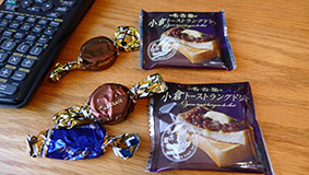 大寒すぎていまが一番寒いときですね。 それでも、最近、ちょっと陽が延びたようにおもいます♪ うれしいな。 休みでも仕事しているので、曜日感覚がまったくなく、今日は月曜なのだと 何度も自分に言い聞かせてました。 先日パン教室でいただいたお菓子を本日の3時のおやつにいただきました びーあい(パン教室をやったところ)の、ぞうかばさんがおっしゃるには ”いかがわしいお菓子” だそうで、、、どんなお菓子なんでしょうね 小倉トーストラングドシャ。。。 あんこ、バター、トースト のお菓子。。。 名古屋では有名で流行っているのか? 卵白が多めのラングドシャのようにみえます、、これがトーストなんだね 小倉は、さらし餡のクリームを固めたようなもの。。 食べてみたら、あんこのお味はわかりませんでした、、、 たぶん、パッケージの写真をみながら、そのお味を想像しながら食べる お菓子・・・?? じっと絵をみながら食べました。 みなさんはおやつにどんなものを食べていますか?