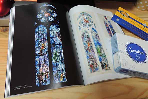 3連休でしたが、仕事も半分ありました。 昨日は、宮城県美術館で開催されている、シャガール展を見に行き、 ブログも書きましたが、アップするところで、一瞬に消えてなくなりました。。。 長文書いたのに一瞬で消えてしまい、再度書く元気もなく、今夜再度アップします。 が、今夜は簡単に書きます。 シャガール展 シャガールというと、パリのオペラ座の天井画が有名で、この展覧会でも はじめに習作からの展示となっています。 が、私は、シャガールは絵画や版画よりも、ステンドグラスの作品にすごく 惹かれます。 絵画や版画は画面から色は飛び出してきませんが、ステンドグラスは、ガラスを 通して、空間にその世界が広がります。 シャガールブルーと呼ばれる深い青が部屋いっぱいに広がるとそこは、海の底か 空の彼方かと思いまごうばかりの世界が広がります 青の中に、黄色や赤などの光が交錯し、混ざりあう。 これこそがシャガールの真骨頂ではないかと思うのです 会場に、大聖堂やホールのステンドグラスを外して持ってくるわけにはいかず、 映像の展示だったのがとても残念です。 ステンドグラスの展示はひとつだけでした。 空間に色が広がるまでではなかったのがさらに残念です。。 音楽は、ラヴェルの、亡き女王のためのパヴァーヌが流れていましたが、 なぜこの曲なのかと思う。Mozartのほうがいいなぁ 亡き女王のためのパヴァーヌ 写真は、図録のランスの大聖堂のステンドグラスとフランスのお菓子