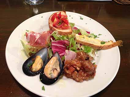 台風が近づいてますが、こちらはまだ晴れています。 明日は雨になるのかな。。 先週末、お昼に街へ行ったので、久しぶりにイタリアンのお店に行きました 本日は、そのお料理のご紹介です トラットリア・デル・カピターノ というお店です Bのランチメニューをお願いしました 前菜の盛り合わせ。。。。すごい盛り! お野菜が多いので、ぱくぱく食べられちゃいました。 トマトのブルスケッタ。。。。トーストにトマトサラダがのっている ムール貝、生ハム、具入りの卵焼きみたいの、、お魚の入った煮込み。。 メインは、アジの煮込み?だったかな、、を選びました うす味のブイヤベースのようなお味。。パプリカがたくさんあって嬉しい~ オレンジを入れるのは斬新だわ。。オレンジがきつくなくってほどよいアクセント になっています。 これに、自家製のパンが3つ ついてきましたが、1つしか食べられませんでした。 デザートは、レモンのケーキ ケーキというより、ほぼクリームでできています。レモンのいい香り♪ このボリュームで1450円でした。 量が多かった、、、けど、食べました。 美味しかった~ おなかいっぱいのなったので、街中をお散歩して帰りました。 最近、パンケーキやさんができて、そこにも行きたかったのですが、すごい人気で いつも外まで並んでいます。 おなかもいっぱいだし、また次の機会にしましょう。。 まぁ、、自分で焼けばいいのですけどね、、パンケーキ。。。 ホシノを起こそうかな。。