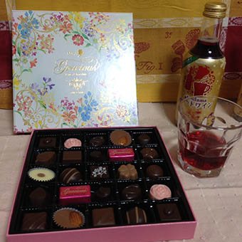 今日はちょっと暖かなと思ったら、これから冷え込むようで、明日はまた寒くなる予報です まだまだ寒さが続きますね この寒さ対策として、最近の私のお気に入りがこれです♪ バレンタインが近いのでスーパーでも特設コーナーができています この一角チョコの香りいっぱいでつい買ってしまう。。 一口サイズの小さいチョコの詰め合わせを買いました そして、ホットワイン 最初は普通のワインにスパイスやオレンジ、シナモンを入れて温めて飲んでいたのですが、ホットワイン そのものをスーパーで見つけました これは、赤玉スイートワインをベースにしてシナモン、クローブのスパイスとはちみつ、オレンジを 加えたものです。 グラスにいれて、レンジでチンすると、ほっとワインのできあがりです(*^_^*) あまくて美味しいです♪ ほぼ毎日少しずつ飲んでいます あったまります 当分、このお楽しみが続きそう~(*^_^*)