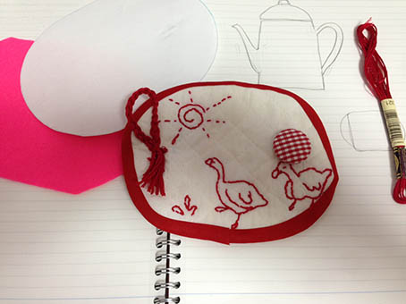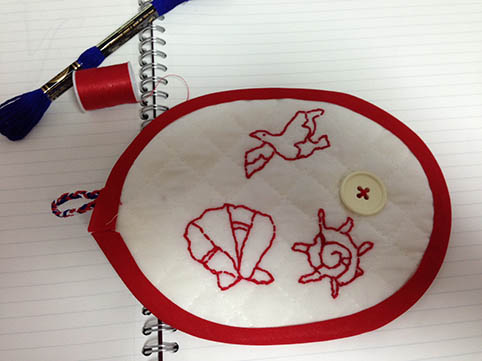 午後から雨になりました 今日も残業なしですが、その後、せっせと昨日の反省と再チャレンジをしました まず、反省点 細部までしっかりと考えよう。。。昨日のは、刺繍部分が端の赤いテープにかかってしまったり、 紐をつけるのを忘れてしまったり、作り方もよく考えもせず、端を塗ってひっくり返したり、余計な 事をしたり、、散々でした それで、今日は、中に入れたキルト芯は小さめにして、2枚のキルトを塗って、それから、テープを アイロンで付けました。 赤い端をとめるテープ、、正式名称はなんていうんだ? アイロンがけのがあったので、それを買いました 縫ってとめるのがいいんだけど、そこまで技術がないので、アイロンです、、 そのうち、ちゃんと縫うやつにも挑戦しよう 今回の図は鳥さんと貝です 海の風景がいいなと思ったけど、面積が小さすぎた、、笑 刺繍といってもステッチ?とかの、ただ、縫うだけなので、もっと違うの(クロスステッチとか) やってみたい。 やりだすと止まらなくなるのは悪い癖だなぁ。。 ボタンがお裁縫箱にあったのを使ったので、かわいくないので、紐を3色にしてみたよ 昨日、作ったのは、ポットに付けてみた。 しばらくはこれでいいか (*^_^*)