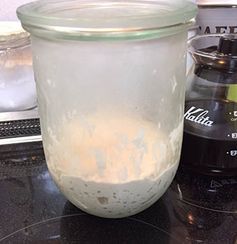 こんばんは 明日はお休みでうれしいなぁ(^u^) ↑完全にだれてる、、連休モードを引きずっているかな。。 いえいえ、そんなことはありませんよ、食べることに関しては、ですが (*^_^*) この間いちごのコンフィーを作りました ジャムのように煮詰めるのがすきでなく、お砂糖も極少量で5分くらいの加熱で瓶に詰めました 果汁がたっぷりだったので、液は別の瓶にいれていました、、ら、、 なぜかこの瓶が発酵しまして、いちご酵母ができました。 ジャムから酵母を作った方がいるというのを聞いたことがありますが、自分のとこでこんなふうに偶然に 近い形で酵母ができるとは驚きです せっかくなので、酵母エキスから、種を作りましょう♪ 煮沸した瓶にいちご酵母エキスと準強力粉(フランス産小麦)を入れて室温に置きました 朝作って、今19時半ですが、元気に育っています♪ いちごが入っている瓶はしゅわしゅわ泡だって発酵しています。いちごのいい香りがします 手前がいちごのエキスで後ろにある瓶でくぷしてるのが種です 前種ともいいます 明日朝、もう一度、エキスと準強力粉をいれて、さらに発酵させて、発酵力を高めます そして、パンを捏ねるという手順です 昨日、薄力粉、強力粉などが糖質をおおく含むことを学んだので、ライ麦で酵母を作ってみることにも 挑戦してみました これは、サワー酵母といいます これから3日このままで発酵を待ちます 酵母ができるといいなぁ あ!酵母できたら、パン焼かないと、、、 なんか、パン焼き、忙しくなしろう。。。 あれぇ、、こんなふうで良かったんだったかしら。。。 ww