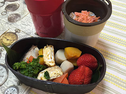 今朝は昨日より寒い、ような気がします。 毎年のことだけど、1月はあっという間に過ぎますね そう言っているうちに、2月、3月と過ぎて、気が付くと桜が咲いたり、、ね~ 今年はそんな事がないようになにかしないと。。 とりあえず、1月はもう終わっちゃうので、今日は特許へ出す書類を郵送までする事と 1月中にタルトタタンを焼こう(*^_^*) お、、食べ物しかもお菓子 それと部屋のお片づけか、、(あまりいっぱい書くとできない、、てかやらない。。多分 2月はそうだな、、ホームページでも作ろうかな おーーーー とここまで書いて、今年の目標とかまだ考えてなかったなぁ。。 なにか、考えなくっちゃ。。あはは こんなんでいいのか、、 お弁当は久しぶりに作ったよ 寒いので、保温の入れ物にいれてます ごはんの上に鮭と胡麻 野菜のスープ おかずは、鱈の酒蒸しと野菜 野菜の炊き合わせ 出汁巻きたまご いちご と 胡桃のキャラメリゼも入れました それと、飲み物はコーヒーね♪ さて、今日は特許を最優先にがんばろう その後、通常仕事にお通いさんです