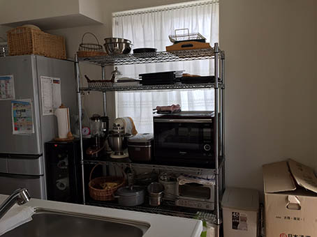 こんばんは、前回の日記から、えっと、2カ月半ですね引越しは3月5日に終えましたが、その後のお片づけがまだまだ終わっておりません、、段ボール箱がまだ40個くらい残っています、、、何がどれくらいあるのかわからない箱が200個以上あったのではないかしら、、箱から出して、家の収納に合うもので、収納力のあるものを探し、注文して、届いたら自分で組立て設置、収納、、、なんて事をしてたら、今日になってしまいました、、それでもまだ片付きません、、、ボーっとしてるわけじゃないけど、1日があっという間ですキッチンまわりは、わりと片付いたほうです右の段ボールのあるところに棚がくる予定です(31日)到着したら、棚に残りのものを入れて、終了ですオーブン、炊飯器、キッチンエイドなどの機械がいっぱいあるので、いわゆるキッチン収納棚では納まらないのでスチールの120センチ幅のを設置しました。あとは、小間物やお洋服がまったく手つかずで、毎日同じものを着てる状態です、、いつになったら片付くのでしょうか、、こうなったら、焦らずやることにしました母は引越しの際、転んで筋肉を痛め、また入院となりましたが、やっと今週には退院できそうでうす来週から、新しい家での生活がスタートしますそれと、私の手ですが、左はほぼ、完治しましたが、右が動かなくて苦労しています何かをつまむことができません、、硬貨をつかめないので、自販機は右手では使えません、スーパーで硬貨をだすのに時間がかかるため、紙幣で支払うので、硬貨が袋にいっぱいになってます、、アイロンをかけるとぴきぴきしたりします。という具合ですすこしでも良くなるといいのですが、いまのわかりません、、さてさて、引越し先でのお話ですが、長くなるので明日にしますとりあえず、元気でいますご心配おかけしてごめんなさい日記再開しますので、これからもどうぞ宜しくお願いします かしこ(*^_^*)?