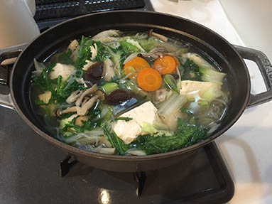 日高昆布、糸こんにゃく 椎茸、しめじ、舞茸 人参 ネギ 白菜