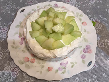 15センチのスポンジケーキを焼いて、クリームたっぷり塗ってメロンを