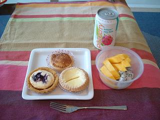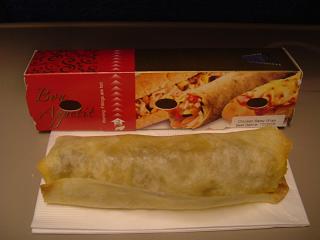 離陸してしばらくすると軽食サービスですが、真夜中だし眠いし疲れてるしとりあえずもらうだけもらって写真を撮ってあとでいただきました。ツナサンドかチキンサテーのポテトラップだったので、チキンサテーを選びました。温かかったしとっても良いにおい。後で食べたけど揚春巻きみたいな感じでなかなか美味しかった。そして到着前には朝食サービスがあり、これまた凄く眠かったけど小腹もすいてきたし洋食のオムレツを選びました。パン類はお持ち帰りしました。SQの機内食はなかなか美味しいと思う。SQは航空会社ランキングで上位クラスに選ばれるだけあって時間も正確だし、機内食は美味しいしサービスも良いですね。また乗りたい航空会社です。無事、成田に到着し入国審査もスムーズに通過し荷物を受取り、自宅に帰りました。今回もとっても楽しい旅行でした。やっぱり海外旅行はやめられな~い。次はいつどこへ・・・最後まで読んでいただきありがとうございました。 おわり。
