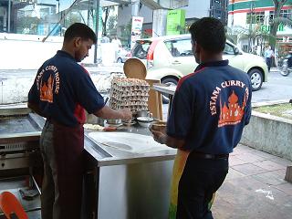 SQ102便 6:30 SIN~KLへ1時間弱のフライトなので機内ではドリンクサービスのみ7:25 KL到着。入国審査&両替をして待ち合わせ場所のKLセントラル駅に向かう。☆両替(滞在中の何回か両替しました)1回目 到着時空港で 1000円=RM30.872回目 AMPANG PARK近く 1000円=RM31.63回目 KLCC 1000円=RM31.34回目 KLCC? 1000円=RM31.355回目 GENTIN HIGHLAND 1000円=RM31.26回目 KLCC US$10=RM35.5KLセントラルまではKLIA EKSPRESで約30分。(RM35)ちょうど電車が来ていたので乗車券を買わずに乗り込む(あとで買うことも出来るとガイドブックに書いてあったので)景色を見ながら乗車しているとあっという間にKLセントラル駅に到着。お友達のTちゃんと改札を出たところで待ち合わせ。駅について運賃の支払いをして改札を出るとTちゃんが迎えに来てくれてました。Tちゃん お久しぶりぃ~ また来ちゃった(^^;挨拶もそこそこに高架鉄道(LRT)に乗り換えてTちゃんのお宅に連れて行ってもらいました。ん? でも、この駅 前も利用したのでなんとなく覚えてます。朝の通勤ラッシュの時間?だったので電車は混んでいてなかなか乗れず3台目?にしてようやく乗れました。KLセントラルからTちゃんのお家のある最寄駅までは近く、駅からお家までも近いので9時過ぎにはTちゃんのお家に到着。前も何回かこの電車に乗ったし、家までの道のりもなんとなく覚えていたので次回は1人でお家まで行けるかも。Tちゃんが飼っているにゃんこのひめもお出迎えしてくれました。最初は様子を伺っているようで触ろうとすると逃げてしまったのですが、徐々に仲良く?なりました。Tちゃんとお喋りしながらお土産を渡したり、食い倒れ計画のリストを見せたりしていると、ひめがいきなり私の二の腕をがぶっと噛みました。いたっー。 油断していたのでいきなりのがぶっは痛かったぞ!その後の滞在中は噛まれることもなく、たくさん遊んでもらったのですが。。。初日のがぶっは熱いWelcomeの洗礼だったのでしょう。ひめはとっても可愛いので多少のことは許しちゃいます。*後日談*ひめは私が帰国した後、きょろきょろしていたそうです。私が借りていた部屋を覗いたり。。。もう~ 可愛いんだから~ひめ~ 楽しい一時をありがとう。すっかりひめのファンになりましたよ。さて、少し休ませてもらった後は早速チャイナタウンに行くことにしました。実は私 とってもお腹がすいていたのです。成田を出発してから機内食しか食べてなかったの。いざ、チャイナタウンへむけて出発と、その時事件は起きたのでした。こんなことをしでかすなんて今まで無く自分のあほさにあきれました。Tちゃん&ダンナくん このことは到着したばかりだし、睡眠不足で頭が活動していなかったことにしてね。でも、このことは一生言われ続けることでしょう。(笑)で、何をしでかしたかというと、キャリーケースの鍵を中に入れたまま外側の南京錠の鍵をかけてしまったのです。ひぇ~ 鍵を壊さないとあかないよ~ どうしよう?ピン止めなどであくかどうか試したけど開かず・・・結局、Tちゃんのダンナくんに連絡してダンナくんのお抱え運転手のHさんに鍵屋まで連れて行ってもらうことになりました。が、しかし、Hさんが簡単に開けることが出来るといって鍵屋には行かず、鍵も壊さず開けてくれました。す・ご・い。Hさん 初対面早々 ご迷惑をおかけしました&てりまかし。そのままHさんの運転の車に乗り込み両替に連れて行ってもらいました。Hさんの知り合いの両替商でレートが少しだけ良かったです。やはり現地の人と知り合いだといざという時に助かりますね。両替の後はまたTちゃんのお家に戻ってもらい、Hさんとは夕食までさよなら。キャリーケースを置き、気を取り直していざチャイナタウンへ。電車(LRT)でチャイナタウンのあるPasar Seni駅へまずは腹ごしらえ。私の希望でワンタンミーを食べる。何でもワンタンミーはスープとドライの2種類あるのだとか。そしてTちゃんが連れて行ってくれたお店はガイドブックにも載っている「 冠 記 」というお店。本店もあるのだけど、チャイナタウンのフードコートの中にある「冠記」へ行きました。その前に近くの屋台でカレーパフも購入♪ 半分子して食べました。ワンタンミー私はスープ、Tちゃんはドライドライも味見させてもらったけど、両方とも美味しかった。南国らしく?スイカジュースも飲んでみました。スイカの味だ。←当たり前ご飯の後はチャイナタウン散策ペタリン通り、雑貨屋、中国寺院(陳氏書院)、インド寺院(スリ・マハ・マリアマン寺院)、セントラルマーケット・・とひと通り案内してもらう。さすが在住 すいすいと案内してくれる。私はいまいち道が良くわかっていない。スリ・マハ・マリアマン寺院・・・KL最大のヒンドゥー教寺院Tちゃんはヒンドゥー式のお祈りを一生懸命してました。何をお願いしたのかな?雑貨屋のひとつ ピーター・ホエ・エボリューションでは色違いでパレオ(RM39)を購入♪ ティオマン島に持って行きます。私 もちろんピンク系 Tちゃん 
