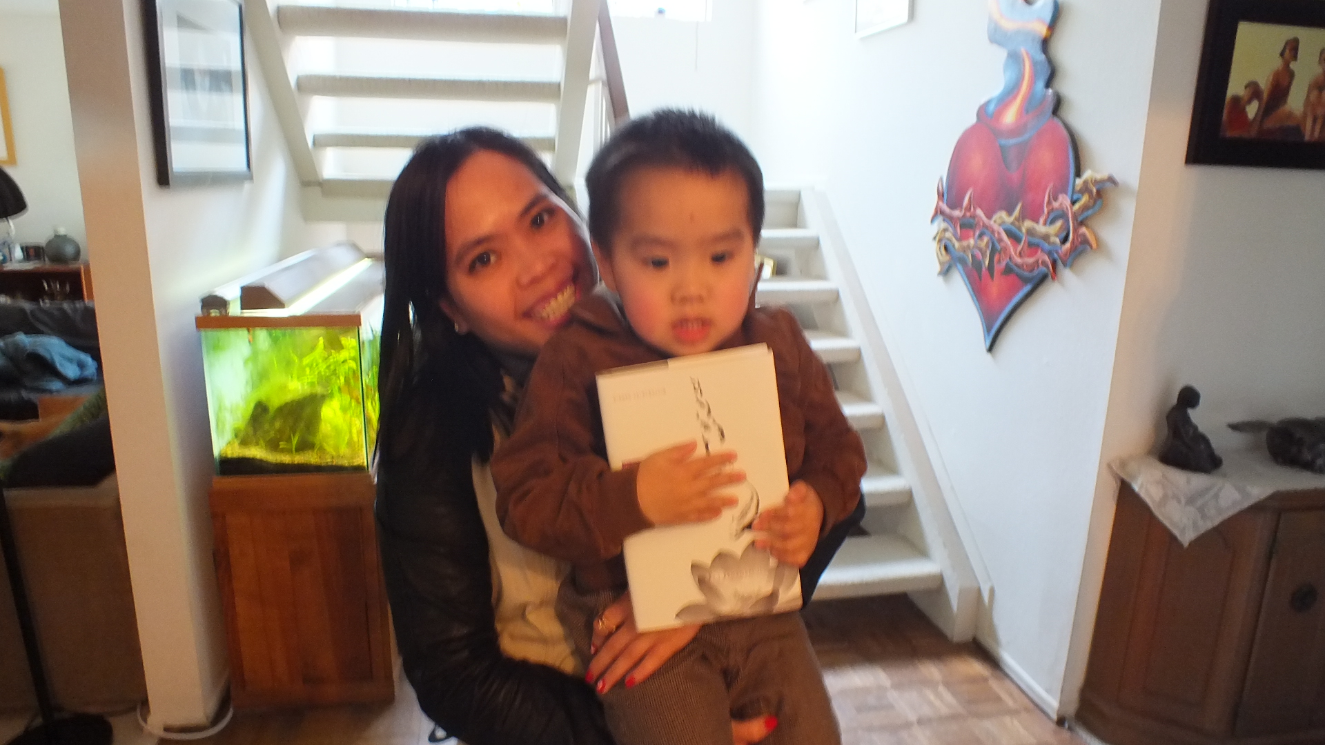 初夢とか、初・なんとか・って、二日目からいうのですか?よくわかりませんけど、元旦は金曜日だったのでラナとスピードウォークに行ってきましたが。。。 「元旦の朝八時に歩くなんて馬鹿は、私たちだけなんだ!」とラナが笑ったように、いつもはぎっしりのパーキング場がガラガラ。 いや、ところが、それだけではないようです。南のカリフォルニアの公園は霜だらけだったのです。きっと寒くてベットから出たくなかったのでしょう。その上、朝8時からは例年のローズパレードの中継がテレビであるから、それを見る人もいるし。。というか、何を隠そう私も去年まではその一人でしたから。 ラナと別れて、すぐに今度は40キロくらい北に住む日本人のお友達の家に直行。有料道路もフリーウェイもガラガラで、初夢かと思ったくらい。I宅でアップルサイダーで乾杯して、自家製のお餅のはいった、お雑煮をいただき、それから私とI氏は日本酒をぐびぐび。私は、アルコールが入るとすぐにお腹がいっぱいになるので、あまり食べられなくなります。ま、それでもあれこれ、ちょこっといただいてみました。日本人と日本語で話す。。これが私にはとっては夢心地。 私、写真とられるより、とる方がすきですから、といった、Sちゃんをパチリ。 Iさんのお宅なのですが、彼女は31日までアリゾナ州に遊びにいってたとかで、I氏が用意したらしいです。 そこに、「ぼくもいれて!」とケイデンスが出てきて、もう一枚! 「自家製のおもちを、おもちかえり・・ください・・なんちゃって」と、I氏から沢山の突き立てのおもちをいただいて帰宅。Iさんも、実はその「もうつかわないお餅付機をいただきに、アリゾナの友達の家に行ってきたのよ」との事で、大みそかの忙しい時期にだんな一人残して遊びにいくなんて。。。とおもっていた、私の心はパッと晴れました。グレッグは、元旦からベティー(実母)のお守りで泊まり込みでした。でもね、アメリカでは、日本の元旦のようなことしないので、いつもと変わらないのですよ。アメリカの場合は、感謝祭、クリスマスが、日本の元旦のような気分なのです。独立祭は、バカ騒ぎパーティーって感じで、とっくの昔にやめ、庭でバーベキューする程度です。 もう、年ですから、いつまで続くかわかりませんけどね。。。。今年もよろしく~~
