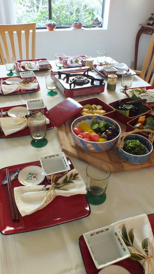 皆ひとりずつ、あれこれ持ってきたので、こんなもんじゃないのですよ。もう、台所も、テーブルも置く場所無くなるくらいの食べものでした。 宴のあとの・・・空のテーブル 日本語を教えた頃の副並べがあったので、これもやりました。最初にうつしたグループ写真は、あとで、カードがはいってなかったのに、気づいておじゃん!ボケのひとつです。