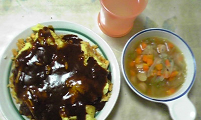 左がメインのオムライスで、右がついでに作った野菜のコンソメスープ♪