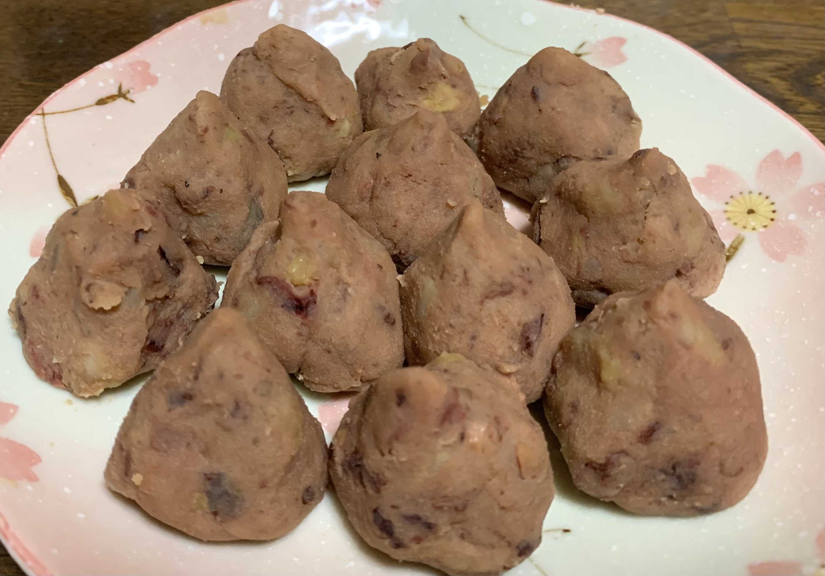 昨夜遅くに栗の皮剥きをして重曹を入れて炊きました。今朝、砂糖を入れて煮詰めて渋皮煮ができました。昨夜の火加減が失敗し皮が剥がれてしまったのがあって残念。それらは丸めて栗のような形とかに……!渋皮煮はこれまでに栗をくださったYさん宅とTさん宅に届けました。