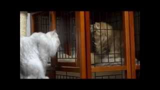 ただいま、ヒート真っ最中のゆかりさん。今日も元気にさとみ君を誘惑してます。ただ、当方、「今度こそは!完全隔離決死隊」の奮闘で、絶対、交代でケージ入りの運命にある2ニャン。ラブラブよりもケージ暮らしが我慢ならないようで…さとみ君は、一応、ゆかりが呼べば、ケージにへばりついて、ゆかりを舐めてますがゆかりは、一旦、ケージから出るとさとみ君の訴えには耳をふさぎ…とっとと猫部屋(ゆかちゃんパパの書斎)を後にします。相変わらずゆかちゃんは食欲ないしで心配だけど…カリカリは食べるので、切らさないようにしてます。それに…ちょっとこのところ、ゆかちゃん重いし…多分、子育て期に食べ過ぎたんだと思う。もともとメタボと言われていたゆかりさん、抱っこするとずっしりです。まさかまた「できてます」なんて言われることはないだろうけど…だって、本格的にヒートの真っ最中だからでも、ゆかりに限っては、人間をだますことなんて…チョロイチョロイ。油断も隙もありません。言い訳じゃないんだけど今回の6号、7号のご懐妊は、本当に想定外で…まさに「してやられた!」という感じでした。だって!本当に、98%(?)発情してなかったんだものいろいろ必死で調べて、聞きまくって…猫は帝王切開しても自然分娩は可能!と、多方面からのお言葉をいただき、できれば1年開けたほうがいいけど…と言われ…「めざせ自然分娩!」が我が家のスローガンとなりもうもう絶対しばらくは隔離政策実施と決めた矢先のことでした。子育て1か月ほどたって、ゆかちゃんパパが、そろそろ隔離を…と言い出して病院で一応聞いてみて…出産後2か月ぐらいたったらヤバいかも…ということで衆人環視のもとにおかれていたゆかちゃんとちびシャと。ヒートの気配はありませんでした。でも、なんかちょっと前哨戦っぽく、ゆかちゃん、愛想がよいかなあ…程度はあったけど、発情探知機のクロおじさんのレーダーにはひっかからずで、一安心。で、一瞬、油断して、目を離したすきに、2匹が同時にケージの外にいた数分間がありました。でも、クネクネ、スリスリもなし!ゲーッツと思って、即、ケージ。その後は、完全隔離で安心していた矢先、そろそろゆかちゃんの産後検診ってことで病院行ったら…「できてます…」「2匹か3匹」思わず…号泣の私でした。で、前回、ゆかりの産後の肥立ちが悪くってもう徹夜で仔猫とゆかりをみていたので…今回、こんなに時間的に間近で、ゆかちゃんにもしものことがあったら…不安で不安で、もうパニックパニック。ああどうしよう…。人間3人をまんまと出し抜いた、ゆかりに文句を言っても仕方ないし(百発百中さとみ君はただただ喜んで誘惑されてるだけだから 責任取らせるのは可哀想だし…)当初から、出産予定で院長と意見があわず。それでも院長が懸念しまくる中、もうちょっともうちょっとと延ばし延ばして院長提案より2週間ほど遅らせて2/19にご出産。おチビの6号ドリー(ドロシー)ちゃん(60g)とでっかい弟7号ダイ(ダイナスティ)君(90g)が無事誕生しました。なぜかゆかりは数日で抜糸も終わり、熱も出さずに元気いっぱい!仔猫もみるみるうちに大きくなって、個性豊かな仔ニャンに育ちました。なにせ…2/28には、6号160g、7号200g…。倍増どころの話じゃありません。ドリーちゃんの後ろにダイ君がひかえています。さっそくイクメンを押し付けられたチビシャと。子煩悩なパパシャとです3号チキちゃんよりも色白で、お鼻が上むけば…目鼻目掃除機のホースが気に入ってるヘンな子4号しんちゃん似のダイ君男の子はゆかちゃんが溺愛し、女の子はチビシャとが育てるパターンが定着しつつあります。で、今回のチビーズは、半端じゃないくらい激しいです本気で毛を逆立てて相手を威嚇!ヴーヴー唸りますそのくせ、2匹仲良く重なってネンネですドリーはおチビのくせに、ダイ君の尻尾にかみついてキャンと言わせますそれでも2ニャンっきりの姉弟。仲よしこよしですゆかりのD litter騒動の間、C litterはそれぞれに親離れして、巣立ちましたが、みんにゃ近くに住んでるので、しょっちゅう会ってますしんちゃんは無防備にダラ~っとゆかちゃんパパに乗っかって3号チキちゃんは、ゆかちゃんのマネして…なんで…うちの子は高いところが好きなんだぁ?仲良し姉妹で、ゆかちゃんパパも…しょっちゅう…離すのに忍びないと言っておりました333月5日にお迎えが来る4号シンシア・ミッシェルのために5号、キャスパー・シュニ君が遊びに来てくれました。3号チキちゃんにシャ―されましたが、シャンプーしたら、怒られなくなりました連休に遊びに来たシュニ君なんか、ものすごーくゴージャス猫に成長しておりました毛ぶきがチキちゃんを上回って…これを見ると、ちびシャとが貧相に見えて…ショーに行く気力が萎えましたで、最後のおったまびっくり4号とのお別れの前日…なぜかゆかりが…3号チキちゃんとツー・ショットです!この2,3か月、子離れし