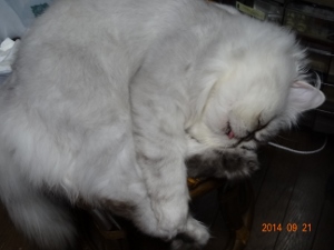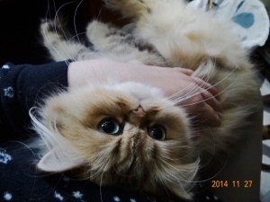 平和がいいのは当たり前。ヒートがないのはいいんだけど…ないと不安( *´艸`)だって…もしかしたら…もしかして…なんて思っちゃうから…4か月も断続的ながら続いたヒートが終わっちゃうと最初は笑い飛ばしていましたが…ほんとにもしかしたら…もしかして…ゆかちゃんに出し抜かれたか?って疑心暗鬼…(決してちびシャトに出し抜かれたとは…絶対!思いません)なにせ…さとみ君は、永遠の「おチビちゃん」いつまでたっても、かわいい私の赤ちゃんです。でも、その赤ちゃんが赤ちゃんをせっせと作っているのも事実ン?呼んだ?応援出演ビアンカはなちゃん元気かなぁ…血統書も出来たし、CFAナンバーも取れたから、そろそろ、はなちゃんパパに連絡してみようかなぁ一方、4か月のヒートの間、ほとんど食べなくって2.3キロにまで痩せたゆかりさん。食欲が戻って、人の顔を見るたび「ご飯ちょうだい」と鳴きますが食が細いのか…3、4口で止めちゃいます。でも2.4キロ回復しました痩せ細って貧相ですが元気に走り回っています。にゃにか?ごようかチラ?片や…ちびシャとは、ゆかちゃんに振り回されてお疲れ気味動きませんひたすら寝てますちょっとアンニュイかも…というのもさとみ君…最近の豹変したゆかちゃんについていけず…おシャト君、袋を散らかしちゃメッ!って怒っちゃったんですが…よくよく見ると…袋がガサゴソ…ンンンあらまぁ…ボクちゃん…にゃんにもちてないのョそうだねぇ…勘違いしてゴメンね…ゆかねえたん…ヘンでちゅねぇへんじゃないわよぉ!ばかしゃと!今のところは…とっても平和な我が家です出し惜しみ…くうたらねるこさん力作コラージュ第2弾下の写真はちびシャとのショーデビューの写真です。ビビりに育ってしまったので、「ベストキャットでーす」の高い高いどころか…普通の抱っこができません(高所恐怖所…)で、普通はオーナーさんがにっこり微笑んでニャンズとですが我が家の場合は…しがみつくおシャと君の雄姿を撮るために…私は後ろ向きジャッジの方に笑われてしまいました…可愛いでしょー(親バカ…)最後までお読みくださり有難うございました。そしていつもご訪問と応援をありがとうございます。にほんブログ村にほんブログ村にほんブログ村にほんブログ村↑ランキング参加中で~す❤ポチしてニャンPetCブログランキング