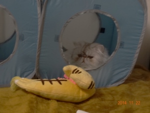 麿ちゃんのママさん、じぇりねこさんからチビシャトのお誕生日プレゼントをいただきました。すっごく欲しかった(私が!)ものばかりでありがとう!じぇりねこさんありがとーごじゃいまちゅじぇりねこしゃん!ありがとーン?ゆかちゃんもお礼言ってくれたの?ありがとねーだって、ゆかちゃんのものでちゅもん!へ?ゆかちゃんのものはゆかちゃんの!ちびしゃとのものも…ゆかちゃんのでちゅよぉ!…なるほどね…確かに…安全なはずだったケージで襲われ…目下、ちびシャとにとって唯一の聖域と化した寝室ですがゆかりはそんなことお構いなしなにせ、好奇心は半端じゃありません最初はさとみ君が抱き枕で遊んでいたのですがそこへゆかりがやってきてぇ…ビビッてムートンの上で固まりました…フンフン、ゆかちゃんのちびちゃんたちによしゃしょーだわねボクちゃんがもらったんでちゅけど…これはどこにちゅじゅくのかちら?ボクちゃんがもらったんでちゅけど…もしもーし!ボクちゃんがもらったんでちゅけど…だめだこりゃ…くしゅん…チビシャト、にゃにか言った?もう、女帝ゆかりはワガママし放題でさとみ君の代わりにスツールの上でネンネまで始めました。…やっぱり…ゆかちゃんが一番、ちびしゃと2番!序列は厳守のようです。…で、突然ですが…2、3週間前からゆかりの引っ越し癖が出てきました。仔猫を加えてウロウロ、運び屋ゆかちゃんの出現です。仕方ないので、産箱を替えて、気分転換しましたおかげで引っ越しはおさまったのですが…ついに…このたび、産箱はもぬけの殻になりました…引っ越し先は…トンネルゆかちゃんの好みはわかりません。仔猫も結構満足しているようです。…というか、3号、4号は新しい産箱の境も乗り越えて勝手にお散歩してますもうすぐ、ゆかりのパニックが始まることでしょう。。最後までお読みくださり有難うございました。そしていつもご訪問と応援をありがとうございます。にほんブログ村にほんブログ村にほんブログ村にほんブログ村↑ランキング参加中で~す❤ポチしてニャンPetCブログランキング