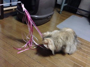 今は…もう…秋…いつの間にか立秋です…とはいえ、大型台風の連続来襲で…あっちこっち…大変ですね。わが母の住む町も避難勧告出てましたが…「足元のおぼつかない一人暮らしの老人がどうやって避難所まで行くのよ!」と言っておりました。よさこいの前夜祭も中止になったみたいだし…最近のお天気って極端しかないみたいですね。人間がこれまでやってきた無謀さの積み重ねに対して、自然が反撃を始めたみたい我が家のニャンズも…普通と違ってて…極端ですが…いまだに発情記録更新中ですとはいえ、発情の段階にもレベル差があるようで…4月中ごろから中休み2日を3回ぐらいとりつつもずっと発情中の我が家の女帝ゆかりさんもはや死語ではありますが…ツンデレですひたすらさとみ君目がけて突進の毎日でも中休みの時は知らん顔翻弄されるのは我が家のニャンズのチョーのおシャト君まだまだ1歳ですところが、このところ…ゆかりさんに異変が普段の中2日休みを大幅に超えてレベルダウンのお休み中遊びに夢中です。遊びモードの時は…ホントに面白い子です朝、気付いたら、お気に入りおもちゃをゆかちゃんパパの部屋から私の部屋へ運んでましたでも、忙しい私に相手にされないのでかわりにクロおじさんがケータイ画面を反射させて遊んでます。(できれば…部屋の外でやってほしかった…)2階のお風呂場は猫トイレと化していたのですが、ゆかちゃんパパのクレームにより、トイレ撤去!人間サマのシャワー用に仕様変更(シャワー室あるんだから使えばいいのに…今度はそこが夜用トイレに)捨てるつもりで片していた洗面器やイスも納戸から復活…ちびシャとはトイレがなくなって戸惑いましたがゆかちゃんにとっては新しい遊び場出現監視下での束の間の逢瀬…とはいえ…どっちもGOING MY WAYちびシャとは…とろくってワンテンポおちょいち…ママもパパもクロおいちゃんも人の恋路をじゃましゅるし…ゆかちゃん、ちょっと飽きちゃいまちた…ゆかちゃんに翻弄されて…お疲れ気味のおシャト君おんにゃごころとあきのしょらなんでしゅって………とはいえ、今朝方、朝のバタバタ状態の中で…ちょっと見逃したすきにさとみ君が、ゆかちゃんに乗っかってました一応、すぐ引っぺがしたので大丈夫だとは思うんだけど………油断も隙もないやつらです最後までお読みくださり有難うございました。そしていつもご訪問と応援をありがとうございます。にほんブログ村にほんブログ村にほんブログ村にほんブログ村↑ランキング参加中で~す❤ポチしてニャンPetCブログランキング
