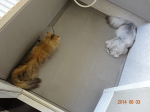 なんだかんだと冷や汗をかいたものの…ゆかりのヒートは未だに続いておりますということは…院長の言葉じゃないけど…発情してるってことは、妊娠してないってことだよなぁ…なので…人もニャンズも…この膠着状態にうんざりしていますが…ひたすら…ゆかちゃんの子宮にとってはメデタイ話ですおかげさまでとりあえず、以後、隔離作戦失敗してできちゃった出産になったとしても生まれるのは9月14日以降のはずだから…麿ちゃんのお誕生日9月16日をクリアしさえすれば…1年に3回ご出産は、回避のメドがたちました。(ン?なんか主旨が違うような気がするけど…)(大阪のバーバさま、もしコレ読まれても怒らないでくださいね(^_^;) まじに、1年は間を開けるつもりで…なんとか頑張っているんです …でも…ゆかちゃんって…ホントに頭が良いので、出し抜かれそう)あとはどれだけ油断せずに…ゆかちゃんとちびしゃとのラブアフェアを阻止するか…ニャンズ(メインはゆかり)と我々のせめぎ合いが続きます。目標1年!目指せ自然分娩!(ひたすら念仏のように唱えております)積極的なゆかちゃんに振り回されるさとみ君にゃに?ちびシャト?いま、お食事中よじゃまちないでにぇえ?ちびシャト?いま、オッケーよねぇったらぁゆかねえたん…ママもパパもみてまちゅよぉ…むりでちゅよぉAnybody who ruins MY romance should keep their nose out of MY businessIt's impossible to stand in the way of true love………チョー……ワガママ…にゃんだから…しょれに…パパもママも馬に蹴られちゃったら…誰がご飯くれるのかちら?Love is Blind… 頭に血が上って、にゃーーんにも考えてにゃいのよ…きっと…本日のおまけアニメは…廊下でヘソ天しているチビシャとを見つけてまとわりついてるちびちび2号ビアンカはなちゃん…(長すぎるぞぉ…)仲良しさんに見えますが…実はこのあと取っ組み合いを始めました…父と娘ではなく…遊び仲間…でした最後までお読みくださり有難うございました。そしていつもご訪問と応援をありがとうございます。にほんブログ村にほんブログ村にほんブログ村にほんブログ村にほんブログ村↑ランキング参加中で~す❤ポチしてニャンPetCブログランキング