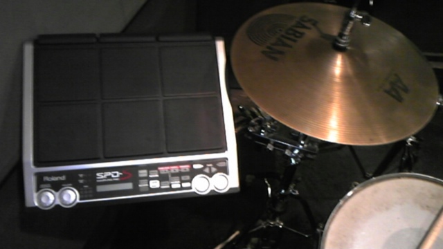 こんなもん持ち込んでみた。 一応、ROLAND SPD-Sだけど、どこに取り付けようかと今回試してみた。シンバルスタンドとハイハットにつけてみたけど、シンバルスタンドは不安定になって、ハイハットスタンドは問題無かった。なので、今度ライブやる時はハイハットに取り付けてみようっと。
