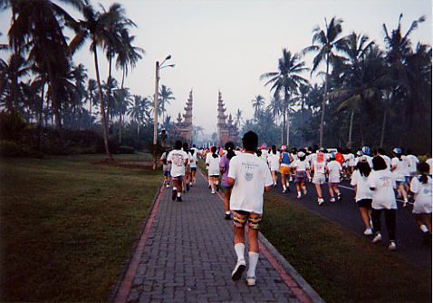 東京マラソンは、大盛況のうちに第一回目を無事に終了しましたね。友人が出場しました、って言う人結構いて、楽しむマラソンが普及しているなって実感が湧きますね。ホノルルマラソンもすっかり定番になりましたね。もう今年は35回大会なんですって。毎年12月の始めに開催されるんだけど、メインスポンサーのJALも、閑散期に大量に集客できるとあって、力が入りますね。バリ島にもマラソンがあるってご存知ですか?正確に言うと、過去にあったんです。ジンバランのGWKパークを拠点に、バリマラソンと言う名称で開催していたんですよ。インドネシアにも紅茶製造工場を立ち上げている日東紅茶がスポンサードしていた市民マラソンなんだけど、2000人の小規模開催で、今では残念な事に取りやめになっています。後援は勿論ガルーダインドネシア航空で、乗客の少ない10月に開催されていました。日本各地から、結構な参加者があったんですよ。このバリマラソンを復活させたいという動きがあるんです。今でもスポンサーさえ見つかれば今年の10月から開催できる準備もあります。どなたかスポンサーになっていただける企業はありませんか?バリショーとタイアップして、イベントを盛り上げる事も可能です。市民マラソンブームの中、バリの自然の中を走ってみたいランナーは数知れず、バリを盛り上げるひとつの手段として、メインのイベントになるかもしれませんね。将来、ホノルルマラソンに迫る勢いでバリマラソンが開催される事を夢見ています。バリがだ~い好きな人はココ押してくださいね♪バリがいつまでもステキな島でありますように