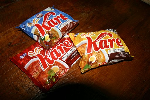 バリに居て小腹が減った時、わざわざ外に食べに行くのも面倒くさいよね。ボクはキッチン付きのアパートを借りているので簡単な調理ならすぐ出来る。そんな時は買い置きのミーを取り出して、僅か3分のクッキングに精を出す。以前はインドミーを中心にストックしておいたんだけど、これと巡り会ってからは、もうこれ一本になっているんですよ。お値段はインドミーよりほんの少し高めだけど、それも日本円で2~3円の事で、カレー味のふくよかなスパイスが思う存分楽しめる。メーカーで出しているいろいろな味を試してみたんだけど、一番右側に写っている黄色いラベル、『Golden Curry Special』 が特筆していると思う。味はまさしくカレーラーメン。さすがスパイスの宝庫インドネシアだけあって、インスタントとは思えない程の深い味わいですよ!スパイスをちまちま使っていない所がすばらしい。お土産に何個か持ち帰って、袋を破った瞬間から、キッチンがバリの世界に彩られます♪バリの思いでをカレーラーメンに託してみては如何ですか?バリがだ~い好きな人はココ押してくださいね♪バリがいつまでもステキな島でありますように