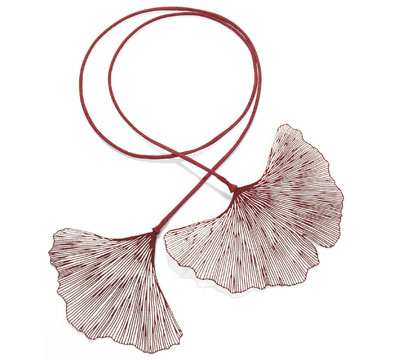 メルマガで一目見て、おお素敵、と思いました。まあ、ちょっと季節はずれなんですけど。葉脈が細かく再現されているのがとってもよい(←植物まにあ)。タートルネックのセーターなんかにつけたらエレガントだろうなあ。そしてポイント高いのは、首のまわりに来る部分がシルクなことです。私はなぜか、金属のチェーンのネックレスをするとそれがどんなに軽くても肩こりがひどくなるのです。なので、胸元が寂しい時は、革ひもなどを使った首飾りを使いますが、どうしてもチープな印象になってしまう。歳相応に大人っぽくしたい時にはちょっと・・・なのです。このネックレスは金属部分とシルク部分がなかなかよい具合に調和して、色合いといいモチーフといい大人の休日っぽい雰囲気。とはいえ、やはり実物を見ないと色やサイズなどがつかみにくいですね。そして試しに買ってみるにはちょっとお高い。どこかに近くで置いてないでしょうかね?(まあ、実際に見て、すごーく気に入ったとしてもやっぱり高すぎなんだけど)