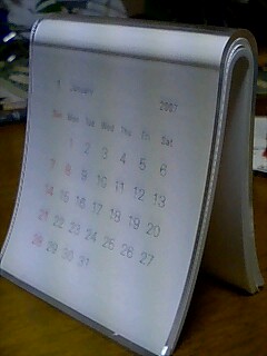 遅ればせながらあけましておめでとうございます。年始だし、書くのは久しぶりなので、ちょっとは季節感もあり気合も入ったネタにしようかと考えていたらあっという間に上旬が終わりました。あらら。買ったものの特徴をメモし、次に類似のものを買う時の選別ポイントとして参照、または、欲しい物をとりあえずメモ、のつもりで作ったブログですが、ロボットよけを貼ってないこともあって色々な人が見てくれているよう。そんなこんなでちょっと力んでしまいました。あんまり力を入れると続かないのでよくないな。改めよう。というわけで選びましたネタは"カレンダー"まずはいただきもののカレンダーです。(ので、残念ながら市販はされていないかと。)二枚のアクリル板(?)の間に紙が挟まっているシンプルな構造。さすが建築会社です。お洒落です。一見どこの会社のものか分からないでしょう?その辺はこちらでどうぞ。内側にさりげなく書かれています。アクリル板があって直接書き込むことはできないので、がんがん予定を書き込んで使うには不向きなんですが、シンプルでどんな机にもなじむし、数字は見やすいので"見るカレンダー"としては優秀だと思います。いただいた時に「グッドデザイン賞をもらった」とかなんとか聞いたのですが、それは2006年版のこちらかな?2006年版と比べると進化形態、というかより建物っぽい感じですね。見やすくなっているし、場所もとらないし。2007年が終わった後は写真立てになりそうです。ありがとうございまーす>いただいた方。「グッドデザイン×カレンダー」で検索をしていた時に目に留まったのはこちら。その名も「もったいないカレンダー」。(こっちは楽天でも手に入るよ!画像からどうぞー)終わった月のカレンダーは切り取ってメモ帳にできるようにミシン目が入っているようです。それはまさにうちでもらったカレンダーの行き先です! という感じ。カレンダーの紙って結構丈夫なことが多いので便利ですよね。母はよく、ピアノの発表会のプログラムなんかを前の年のカレンダーで作っていました。お絵かきにもよく使ったな~。裏が使えないカレンダー(濃い色、とか)をもらった時にはなんて使えないって思いましたもん。って、この使い方(カレンダーの裏を丸ごと必要とする)にはこのカレンダーは不向きですね!弱点発見です(笑)
