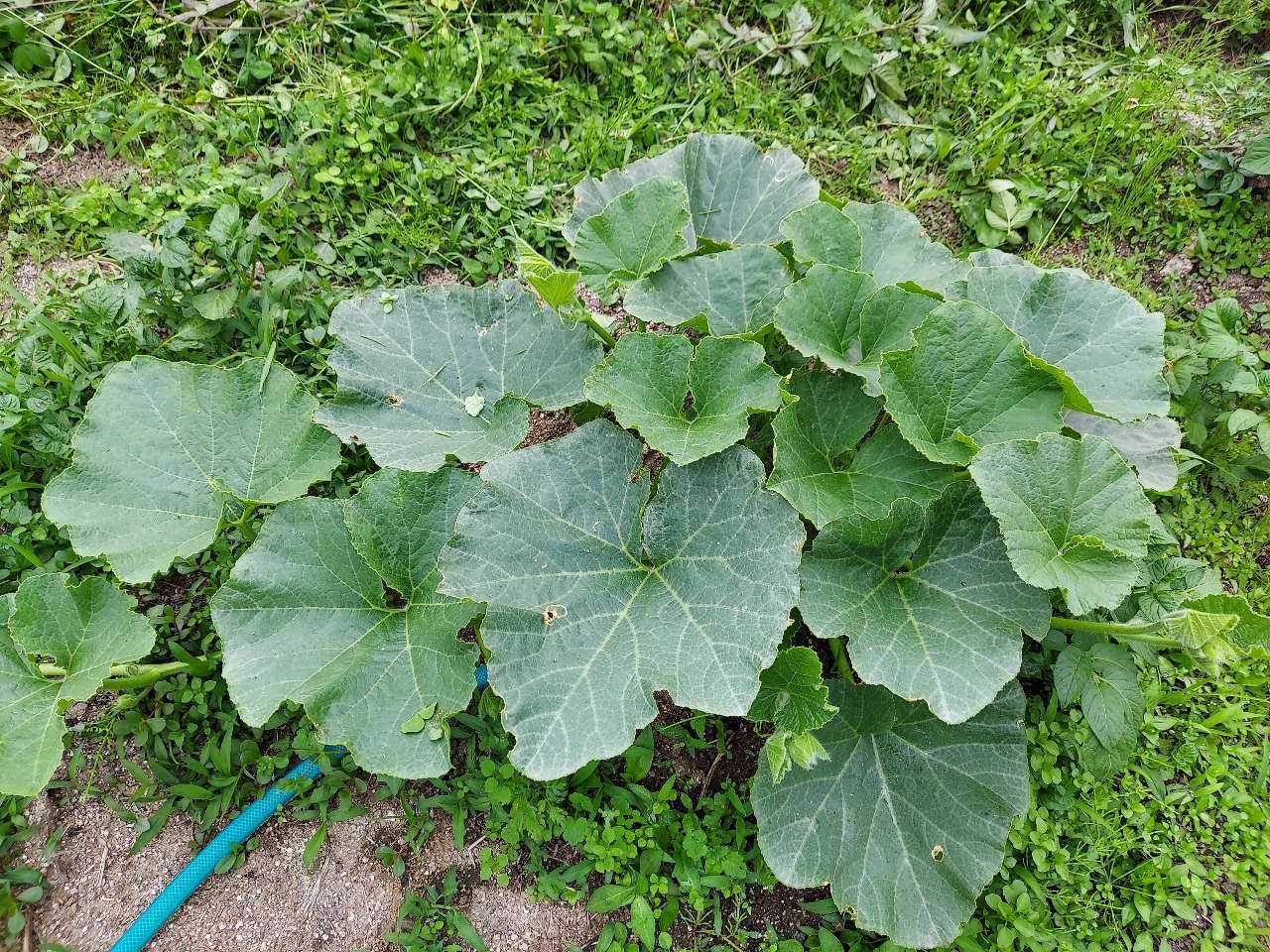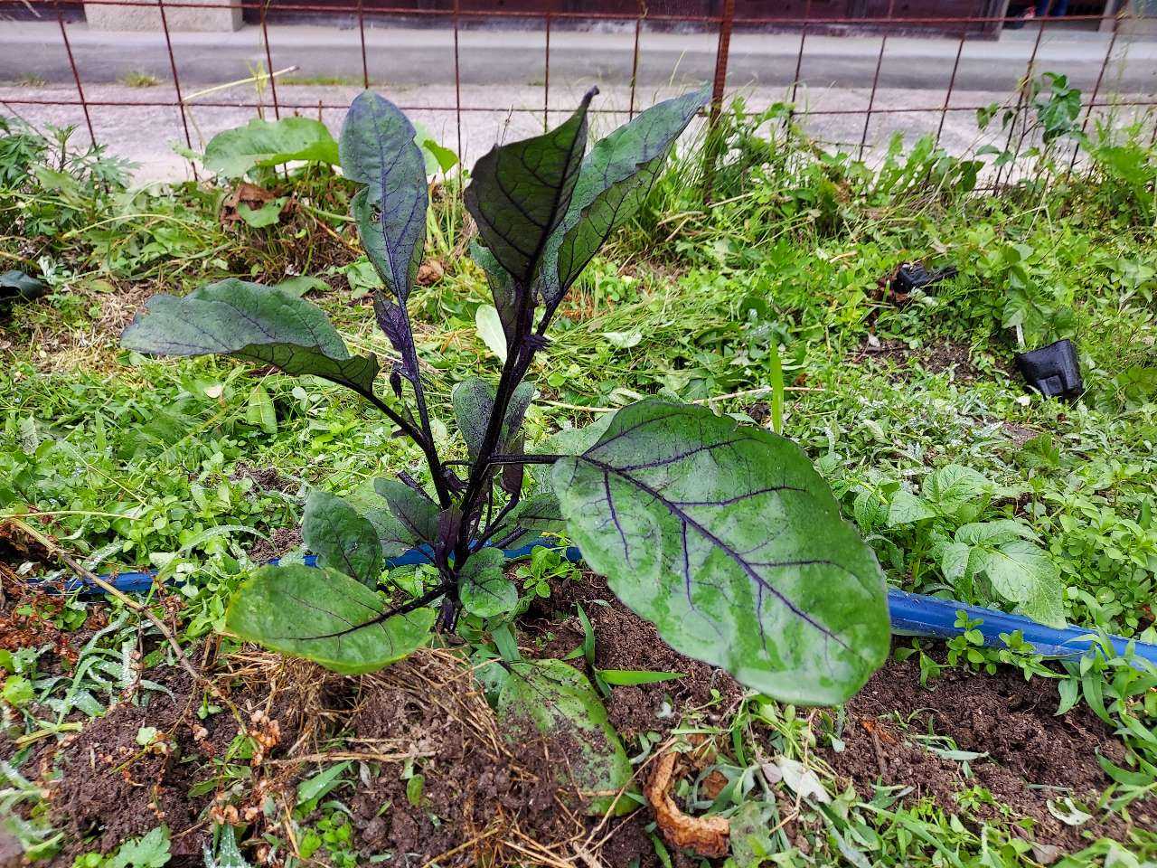 夏野菜のカボチャ(左)とナス(右)などはやっと根付きました。