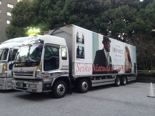 新年明けましておめでとうございます本年もどーぞよろしくお願いします さてさて、大晦日のお話聖子ちゃんのカウントダウンライブ行ってきました今年はグランドプリンスホテル新高輪 飛天の間での開催しかも1部、2部の2回公演1部は『New Year's Eve Live Party』2部は『Count Down Live Party』2回コンサートを続けて見るのは初めてだったのでもう今となっては1部のことだったか2部のことだったかごっちゃになってしまいましたよ(>_<)しかも2部の途中で紅白の中継も入ったので若干1部と2部のセットリスト構成が違ってたりしてね でもでも、今回のカウントダウンとーっても良かったセットリストも大好きな曲ばかり東洋一の宴会場、飛天の間という事でちょっとディナーショーと勘違いしてしまいがちでも次から次へと歌ってくれるのですごく得した気分レポは後ほど・・・ まずは到着して目指したのは聖子ちゃんトラック残念ながら反対側は隣のトラックと近すぎてうまく撮れず・・・(^_^;) そして、飛天の間入り口です 夢の世界へ続く長いスロープですここを歩く時はいつもゴージャスな気分になります噴水の前で聖子ちゃん人形の撮影 今回買ったグッズ達さんトートバッグとマフラータオルタオルは今回も今治タオルでもインク香りかな?ちょっと臭いどちらもピンクと紺の2種類普段使いしたいので紺を購入しましたそしてガチャポンで出たキーホルダーとバルーンのチャーム1部の前にガチャポンやったんだけどもう一回2部の前にやろうとしたらもう終了しててがっかりでもお友達からフローレスにも同じのあるよ~と教えてもらって一安心バルーンの方は聖子ちゃんのイラストが書いてあるんだけどなかなかかわいい!他の種類も欲しいぞではでは、次に思い出せる限りのレポをお送りしま~す