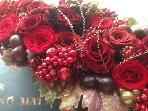 遅くなりましたが・・・ディナーショーの後半のおはなし乾杯も終わり聖子ちゃんのご挨拶も終わり『今にも終わってしまいそうになってしまいましたが・・・(笑)』の、台詞も出て『皆さんよくご存知の懐かしい曲3曲お送りします今の季節にぴったりのこの曲から~』で、そうそうあの曲ハートのイヤリングクリスマス気分にはちょっと早い横浜ディナーショーではぴったりなこの曲聴きなれてる曲だけどこの日はなんてたってフリフリドレスにあの前髪のキュートな聖子ちゃんが歌うのですよ!そりゃもうかわいすぎます硝子のプリズムわぁお意外な曲ディナーショーでこの曲歌うんだ!!!わぁーいしかも聖子ちゃんが花道歩いてきた~~~歩きながら、サビの部分でマイクを客席に向ける聖子ちゃん大丈夫?聖子ちゃんこの曲シングル曲だと勘違いしてないかなぁ~コンサートでは大丈夫だけどここはロイヤルパークホテル横浜ディナーショーだよ~~~でも楽しいからいいや花道先端で階段ちょっとだけ降臨めちゃくちゃ幸せな時間だよ~ステージに戻っていく聖子様そして次の曲一瞬何の曲だかわからなくなってしまった聞き覚えのあるこの前奏聴いて何だっけこの曲あっ(あの曲かぁ!)えっ(早すぎじゃん)そっか(含まれてたのか)てへへ(3曲って言ってたよね)赤いスイートピー3曲って赤いスイートピーは入ってないと思ってた3曲歌った後に赤いスイートピーがくると思い込んでたので混乱してしまったあわてて赤いスイートピーを準備とはいえ、バッグからは出してあったからファスナーあけて探してっていうことはしてないからねあ~もう終わりなんだぁ~さみしいかわいい前髪聖子ちゃんとお別れと思うととても悲しいもっともっと見ていたいもう一度、花道先端まで来てくれましたこのキラキラぶりは何なんでしょう??このキラキラの破片少しだけ浴びてきました前髪聖子ちゃんが去った後すぐにSEIKOコール5分以上かかったかな?真っ白い雪の女王様降臨あ、ステージのファイヤーが一個着いてない聖子ちゃんもちょっと目がキョロでも、美しいPearl-White Eveもう溜息が出るほどの美しさ長いドレスで花道を歩く聖子様ハラハラしちゃうおずおずと歩く姿けなげな瞳私でさえ抱きしめてあげたいと思っちゃう『今夜私はあなたのものよ~』なんて言われたら・・・何が起こるかわかりませんざざーん、ざざーん、ざざーんなんとか間に合いフッフー フフフ フッ・・・今年も魔法をかけてくれました花道の着火はワンダフルでした裾の広がるドレスは炎が移らないかいつも心配しちゃいます大丈夫なように考えられてるんでしょうがハラハラドキドキが最後まで続きますいつまでも余韻に浸りたい・・・ですが、一部ですからとっとと帰らないといけない係りの人がどんどんテーブルの上の花を下げ片付けていくきっとこの後、裏では戦争なんだろうなぁ私たちの優雅な気持ちと裏腹に食器を片付け、クロスを取替え、お皿をセットし直しお花も直してまた飾り・・・・仕事上宴会場の裏を知ってる身としてはさっさと去らねば・・・・でもね、宴会場のロビーでお友達に会って立ち話がとまらない~~いつものグーフィーちゃんたちともお逢いできましたまた、逢いましょうと約束をしてお別れしました今回、ディナーショーで聖子ちゃんにプレゼントしたプリザーブドフラワーのアレンジメント薔薇のように咲いて、桜のように散ってのイメージ合わせて赤い薔薇の組み合わせで・・・グーフィーちゃんと聖子ちゃんの前でツーショット横浜はどこを見てもきれいな夜景ばかりですねぶれちゃったけど地面の水溜りに映ってきれいでした今年は、お友達にお誘いいただいて新高輪グランドプリンスのディナーショーにも行くことになりました!久しぶりの飛天の間です緊張しちゃいますあの長い花道を歩く聖子ちゃん楽しみです