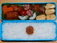 今年もまたダーがドイツへ出張します(私は今回お留守番)土曜日に二人で買い物へ出かけたのでそのへんのお店でテキトーにお昼を済まそうとしたら日本で食事できるのはあと何回かしかないから変なものはなるべく食べたくないと言われました…。縁起でもないこと言わないでください帰国すればまた食べられますから^^; 白身魚のフライ、ブロッコリー、焼き明太子、小松菜の煮びたし、ピーマン・ウインナー炒め、ミニトマト、ネギ入りだし巻き玉子、梅干し