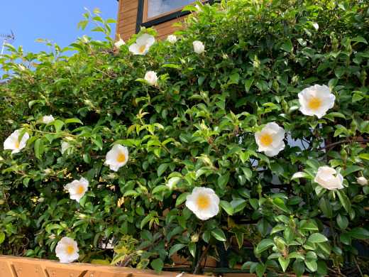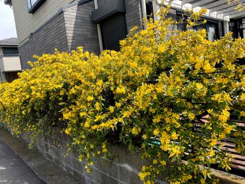 Yさんと新川へお花見に行くと桜を観る以外に周辺の散策も楽しんでいます。ガーデニングを楽しんでいらっしゃる方が多く目の保養と植物の勉強になっています。昨年お見掛けして今年も楽しみにしていた鮮やかなカロライナジャスミン。今年も綺麗に咲いていました。一体どうなっているのかとYさんとよくよく拝見したら右手の方に1本の太い幹があり、そこから派生していました。ここまで育てるのにどれだけの手間暇がかかったことか…感服いたしますm(__)m別のお宅の門扉の脇にはスイートアリッサムの寄せ植えが置かれていました。色のグラデーションがとても素敵フリンジ咲きや八重咲きのチューリップもたくさん咲いていてとても可愛らしいお庭なのですがここの奥様と庭先でお話させていただいたら奥様もとっても可愛らしい方でした表通りから少し奥まったお宅の真っ白な塀にひと際目立つ花が咲いています。ベニバナトキワマンサクでした。おうちの雰囲気ともピッタリ合っていて素敵でしたこちらはお庭ではなく、川沿いを少し外れた道端。対岸からも目を引くオオバベニガシワの群生が…Yさんは、この色艶を気に入っていてお庭で育てたいと昨年からずっと言っていますが…本気でしょうか(笑)
