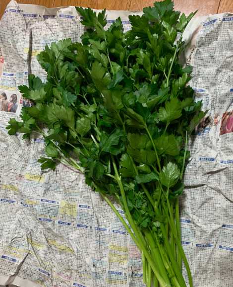 Oさんからイタリアンパセリをいただきました。新聞と比べていただくとその大きさがおわかりいただけると思いますが「これ、パセリ」というサイズです。イタリアンパセリってこんなに大きくなるのですね。Oさんは「食べれそうなところだけ使ってあとは惜しみなく捨ててね」なんて言っていましたがサラダはもちろん、茹でたりソテーにしたり美味しくいただきますMさんからは、またいつもの筍と今シーズン初のセリをいただきました。独特の強い香りが苦手な方もいらっしゃると思いますがうちの夫婦は二人とも大好き今夜は春巻きを作る予定でしたが新鮮なうちに…と、急遽セリ鍋に変更です笑〆はお蕎麦で 楽しみです。