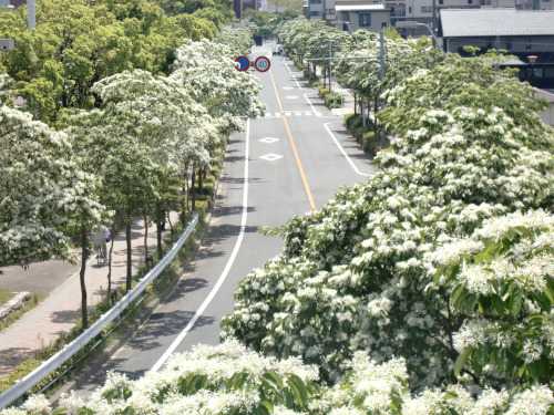 名古屋に住んでいた頃、すぐ近く(徒歩1分)にヒトツバタゴ(別名:なんじゃもんじゃ)の並木道があり毎年GW頃に満開になっていました。250本も植えられているので、それは見事でした。これは、2010年に歩道橋の上から撮影したものです。黄砂のせいか、全体的に霞んでいて残念『なんじゃもんじゃ』というのは変な名前ですが昔、この木は何の木か?と聞いた時に分からないという意味で「なんじゃもんじゃ」と答えたから…と言われていますが、真偽のほどは分かりません。このヒトツバタゴを、今住んでいる場所の近くでも見られないものかと探していたのですが末摘む花さんが『青葉の森公園』で見られるらしいと教えてくださいましたとはいえ、徒歩と電車2本とで片道1時間近くかかります。二の足を踏んでいましたが、「やはり見たい」と急に思い立って今日行くことにしました『青葉の森公園』は東京ドーム約10個分の敷地らしいので念のため、出かける前にヒトツバタゴの場所を確認しておこうと管理事務所に電話をしてみました。すると、、、「ヒトツバタゴは先月場所を移したばかりなので今年は花は見られないかもしれません」となぜ今移動させたのですか~~~ショックを受けている私に、管理事務所の方が「新しく芽吹いているのは見られると思いますよ」と、慰めてくださいました^^;すると、なんだか移植直後の様子を見たくなって「やっぱり行こう」と決めて出かけました。『青葉の森公園』に到着後、場所は定かではなかったもののいかにも移動させたばかりという感じの一角を発見ヒトツバタゴでしたもちろん、かなり寂しい感じの…^^;でも、少~しだけ花が咲いていました。見事な花を咲かせるまでにあと何年かかるでしょうか。楽しみに待ちたいと思いますヒトツバタゴは残念でしたが、楽しく散策できたので園内の様子など、また後日紹介させてください今日は園内のマップだけ貼り付けておきます。『青葉の森公園』地図上をクリックすると、詳細なMapが見られます。