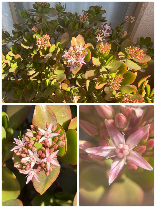 我が家の「金のなる木」につぼみがついた話は1月下旬のブログでご紹介しましたが1ヶ月以上経ってやっと花が咲き始めました。朝日のせいか、葉の色が実際以上に黄ばんでいますがピンクの花が咲き始めて可愛いです右下の写真は100均のマクロレンズで撮りました。室内で、私の身長よりも高くなった「サンセベリア」は今年も根元から元気に新芽が顔を出し始めました。鉢のサイズに対して大きくなり過ぎているのですが植え替えて鉢を大きくするともっと大きく育ってしまうしかといって株分けしても置き場所も貰い手もないし…でも、とにかく新芽は可愛いです1週間ほど出張していたダーが昨日帰国しました。短期出張だし、行き先がアメリカの片田舎だったので今回のお土産はビールだけです缶がユニークなので記念撮影(笑)昨日のブログを見て、もも太さんが「メジロのお尻可愛い」と言ってくれたので嬉しくなってアップにしてみました。このメジロに叱られそうです
