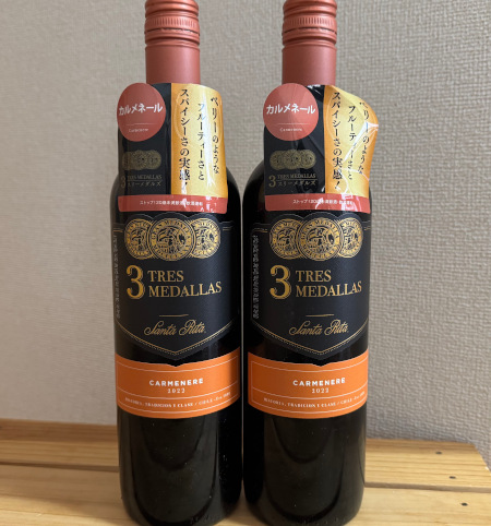 モラタメさんの「タメせる」に登場したこちらのワインを購入しました。サッポロビールサンタ・リタ 「スリー・メダルズ」 カルメネール 2本チリのサンタ・リタというワイナリーで作られたフルボディの濃厚なワインですチリワインは安価で美味しいので結構飲んでいますがカルメネールという品種は飲んだことないな~と思ったらチリの代表品種ですって! …飲んでるかも!笑フルボディなのでガッツリなお肉と一緒に合う果実味はありますが、フルーティーと表現すると軽過ぎる…もっとコクのある果実味でしっかりとした香ばしさも感じます。サッポロビールがこんなワインを出してるなんて~。お得に試せて良かったです