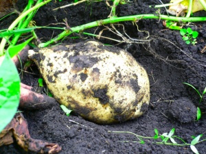 NHK連続ドラマの舞台となっている癒しの里「湯布院」その湯布院の「亀の井別荘」「玉ノ湯」をはじめとする名旅館で飲まれている八喜芋焼酎「Le Cresson」(ル・クレソン)。その原料となるお芋の生育状況を確かめに、本日は湯布院温泉に行って参りました。盆地である湯布院のそのまた山間で栽培。「黄金千貫」「ベジータレッド」の両種とも順調に大きく成長しております。このお芋達が今年も美味しい芋焼酎になってくれることを祈ります♪