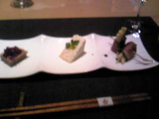 はたから見たらこれほどコワイものはないだろうなオンナ5人旅(笑)いつも集まる気の会う仲間で箱根の温泉へ一泊旅行へ日曜の昼に発ち、ついたらソク温泉、その後はお食事その後に温泉、寝て起きたら温泉、その後は自由解散そんなまったりスケジュールです(笑)早速行ったお風呂は露天もあり、なかなか。やはり大きなお風呂は気持ちいい!その後はお食事までお酒もお菓子も我慢して(笑)いざ!レストランへ基本和食のコースです。このお皿キレイよね。メインが鴨だったのですが、基本和食なので和で食べたかった気も・・・ゆずこしょうもありましたけどもうソースがかかってしまっていたので最初から分けて欲しかったなぁ・・・お食事はとっても美味しいものばかり・・・とは(^^;なかなかすべていいってのにはめぐり合えませんね。頼んでいたサービスを忘れてくれちゃって・・・タイミングはずしたサービスなんてないほうがいいくらいなかんじでしょう?ちょっとそこらへんが残念なお宿でした。しかし、泊まりで出かけるのは初めてだったんですが楽しかったですね~食事の後はみんなでお部屋で飲んでつまんでゲームにTV鑑賞・・・家族といるようにまったりでした(笑)