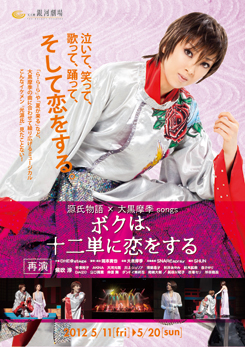 http://genji2010.exblog.jp/5月11日(金)~5月20日(日)<出演>紫吹淳 中澤裕子 AKINA 大河元気 川上ジュリア 須藤温子折井あゆみ 鈴木拡樹 杏さゆり 山口賢貴 仲原舞 ダンドイ舞莉花岡崎大樹/長谷川紀子 赤澤ムック 岸田敏志 以前2010年10月27日(水)~11月7日(日)で初演だったそうです。面白そうかな~と思ってお友達のKOOちゃんを誘って観て来ました。しかし、相変わらずのシャッター施設(爆)天王洲アイル・・・大黒摩季さんの歌はシングルくらいしか知らなくて・・・わからない曲がこの舞台は使う曲調べて!?聴いてから行った方いいですね~そして、「源氏物語」知らないとよくわからないかなぁ・・・いや、知っていても「葵上が亡くなるのは光の君が明石へ行く前だよねぇ??」と観ながら悩むかも(笑)この日が初日でした。基本、宝塚を退団された元男役の方は・・・女性に戻ってほしいと思ってる(笑)残念ながら今回もどう見ても他の男性より光源氏の紫吹淳さんのがかっこよく(爆)他の女性より顔が小さい(爆)(爆)でも、あのかっこよさは宝塚の中で終わってほしいのだな・・・発声も立ち振る舞いも一人だけ宝塚なのは違和感なんだな~ってもしかして、そこ狙ってるのかもしれないですけど・・・この舞台なら男性俳優でいいような・・・他の舞台で観た紫吹淳さん、ミステリアスな女性役など結構よかったので今後はもう女性役でいて欲しい・・・気がしました。余談ですけど、天海さんも退団後映画で光源氏演じたんですね。それはそれは素敵でしたが・・・映画自体が○ソ映画でね(爆)【23%OFF!】千年の恋 ひかる源氏物語 【創立60周年記念 東映オールスターキャンペーン】(DVD)価格:2,263円(税込、送料別)映画でリアルなラブシーンはちょっとなぁと。女同士だもんなぁって。宝塚の舞台では「魔法にかかってる」ので(笑)違和感ないんだけどね。でも、オファー来たら断れないもんね~って彼女らをしのぐいい男がいないのがいけないのだ(笑)雅で優雅な女性と見まごう美しい男ってのが宝塚の中にしかいないしなぁ・・・岸田敏志さん・・・新八先生だ懐かしい(爆)桐壺帝、よかったです(笑)ほのぼのお父さんでしたね。中澤裕子さん・・・が藤壺かぁ(爆)いやね、もうこの世で一番くらいの女性の役でしょ?彼女も一般的には可愛いけど・・・背が低くて顔が紫吹さんの1.5倍って感じで(すみません・・・)うーん、藤壺かぁ(爆)(爆)モー娘出の割には踊りも歌も・・・TVの中でタレントさんでいるがいいのではないでしょうかね?(激辛)後の方は役名とご本人がつながらず・・・すみません皆さん役者が本職でダンサーではないと思うのでそんなにダンスに関して追及してもしょうがないとは思うんだけど(笑)古田新太さんが歌って踊って、それがうまくなくてもそれはもうそれでいい、むしろそれが笑いを誘うものであり、強烈な個性であり、彼に美しいターンなんて求めないし。まぁもう立ってるだけですんごい迫力だもんね~白ブリーフで舞台中央に立つって・・・もう既存の域は出たね(笑)最近の作品観て思うんだけど、ミュージカル仕立てで踊るの多いけどうまくて納得ともならず、ヘタだけど味があって踊るだけで笑えるものでもなくそんなヘタでもないけど本職じゃないんですからねって雰囲気なんだよね・・・演技もヘタでもいいのなんだか惹きこまれるとかすごく注目しちゃうってものでもなくそこそこうまいんだけど何も残らない踊りもそう、ヘタでも観ちゃうってものもあるし、うまさだけではないんだけど・・・松岡修造じゃないけど「熱い」ものがあんまり感じられないんだよなぁ・・・「カエルの王女さま」に出てる大島容子さん、ヘタなおばちゃんってことになってるけど彼女リズム感悪くないし、結構うまいと思う。その上おばちゃんルックス生かした(笑)振りが入って微笑ましいというか・・・私は結構彼女を見ちゃう。完全個人的見解だけど今すっごく頑張られてるのではないのかなと。役と同じで今までこんな踊ったり歌ったりすることなくて。でも、そこは女優、顔は頑張ってるおばちゃん、こんなに歌ったり踊ったことなくて一生懸命なおばちゃん、いきいきしてとっても楽しそうでこのおばちゃんが出来るなら!?こっちも一緒にやりたいなって思わせる。その演技しながら踊って歌って・・・ならすんごい女優ですよ!(笑)そうじゃなくて本当に楽しんでそんな風ならそれもいいよね。この「熱い」感じ、舞台でもっと感じたいんだよね~なんかちょっと面白いアドリブ言ってウケようって、なんだかみんなそっちへ走ってる気がしちゃう。またここで引き合いに出すのもなんなんですが「SHOCK」観まくってしまうとねぇ・・・ハンパはミュージカルは歯がゆいのだ・・・元宝塚の男役に頼らない、とりあえずの笑いの前に本来の演技でダンスで感動を与えて欲しい。沢山の舞台があるけど本当に感動できる舞台は少ない。いい加減な気持ちで演じてる人はいないと思うけどそれ以上の何かを持って挑まないと誰も感動