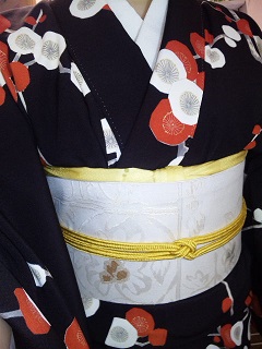 今日は当初は晴れ予報、だんだん途中から雨予報って・・・はっきりしやがれ!(爆)な天気でしたが結局は暑いくらいの晴れだったので(笑)また誂えてから日の目をみていない着物で行きました。アンティークの反物で「竹久夢二」の記載がありました。デザインがそうなのかな?確かにそれっぽい。梅を図案化したもののようです。かなり古くて仕立てたら実は肩の辺りの白い梅に染みがあったんだけど・・・着物って・・・実はぱっと見わかんない(笑)よく見てもわからない(笑)実は我ながらアラフォーが着てていい柄か!?とも思いますが(笑)もーむちゃくちゃ気に入りまして!レトロっぽい感じ好きなんです。今、探してもない感じ。着物に関しては振袖と(本当は着てもいいんだけどね・爆)留袖以外は気に入ればどんなハデでも着る意気込みです(笑)しかも、これ・・・反物状態で6980円でした(爆)優彩 京都こちらレトロな反物が安い!八掛も今まで買った一番高いのが5000円くらい、安いのだと2800円(爆)で、反物と八掛をこちらへお願いして・・・ハイテクミシンを使用したお手頃価格!〔小紋〕〔仕立て〕〔着物〕〔ハイテク〕〔着物お仕立て...価格:8,000円(税込、送料込)肌触りの良い胴裏地を今ならお買い得価格でご提供【一般用 高級 正絹 胴裏地】 - s060【sm...価格:3,200円(税込、送料込)送料とか雑費入れても3万以下でオートクチュールサイズで出来ちゃうんですね~ある意味安い♪ワンピで3万なんてよく使ってもんです。草履もいつもコレなんですけどカレンブロッソ カフェぞうり牛革押し型 小判型モデル オフホワイト S・M・L寸 踵高さ 5....価格:18,000円(税込、送料込)久々に「金鷲」(キンワシ)草履を履きました。→他の金鷲草履はこちら←金鷲草履-No.5017 Mサイズのぞうり長さ23.5巾7.5かかと4.0cm(普段・...価格:4,358円(税込、送料別)お手頃ですし、結構履きやすいです。しかし、たまに着ると履くといつもと違うところが筋肉痛・・・