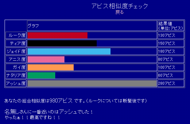 見ろよこの結果をさッ!ズバ抜けてアッシュ度が高い件について(爆…何?そんなに私って非常識なの?ふごはっっっ(グ、グノーシsグシャァ(ryつ[アビス相似度チェック]モンスターズファンタジー生命の洞窟にて次々とやってくる方々をお待ちしてたらLD直前で昇天…orz(死そりゃないぜ…wwとりあえず、やっぱ悔しいのでラビリンスでレベルageをしていたときのこと。つ◆ゴリラ3体出現www(攻撃力強いのなんのってwwwミステリードール(下から2番目)リンチされて即死だおwww(爆…なんとか勝利できましたが…LP惜しいなぁ…orzまぁいいや。(うん。誰か、質の良いMIDIサイトの場所教えt(自分で探せネタぎれ。まさか、ネタがきれるなんて思っても無かったッス。みんなーっオラにネタをわけてk(ry